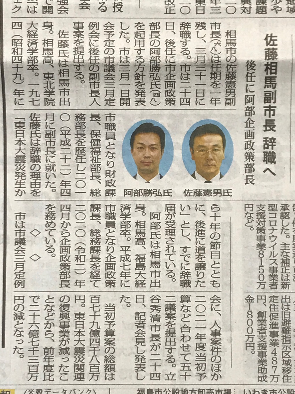 当館副館長の阿部勝弘氏が、相馬市副市長に推挙されました