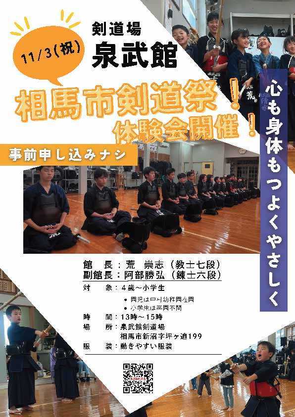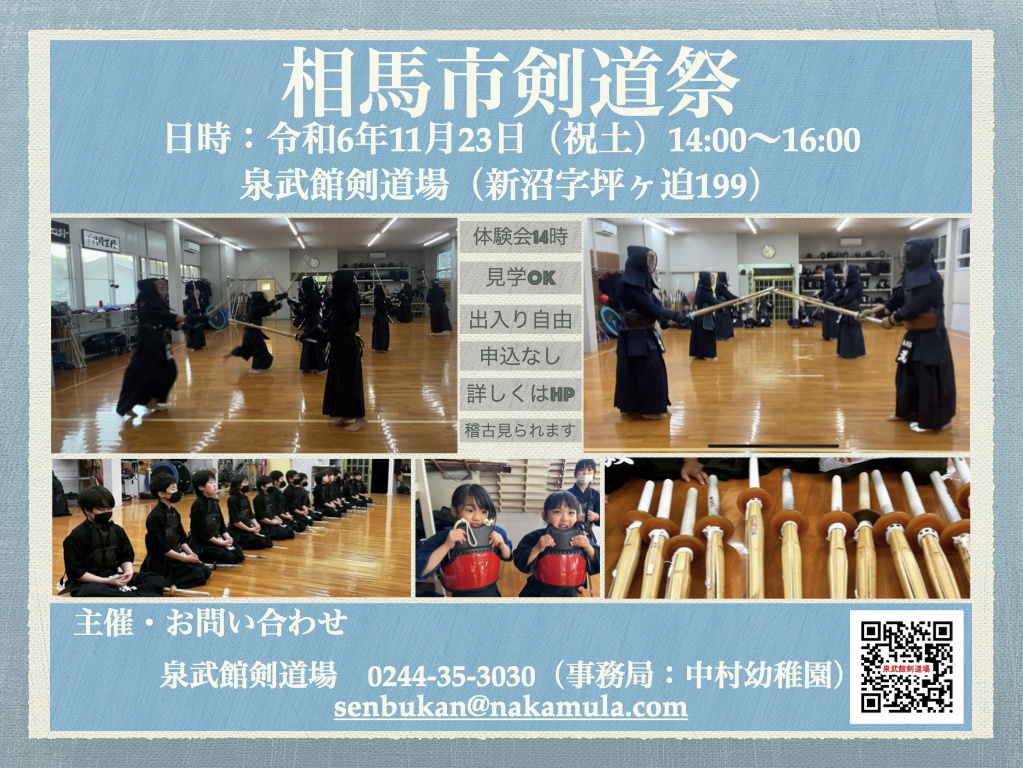 R6.11.23に第2回相馬市剣道祭が泉武館剣道場で開催されました。(市内体育館は予約を先に越されたの涙)年に一度、同門の生徒が一同に会する剣道祭