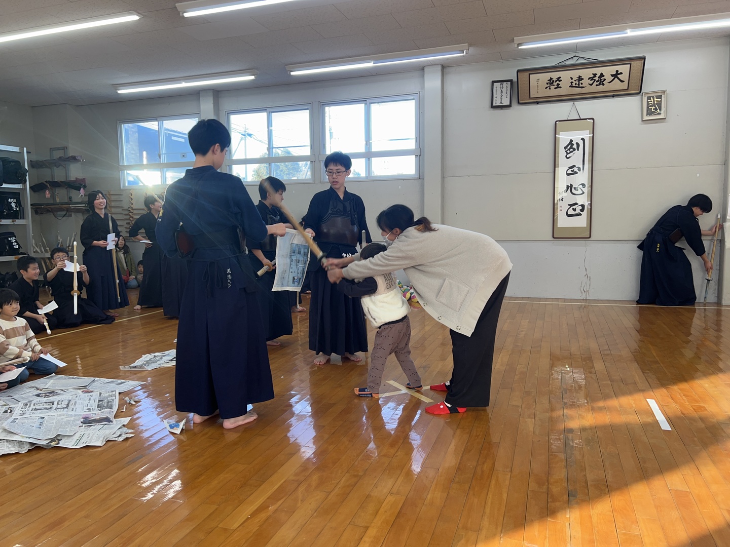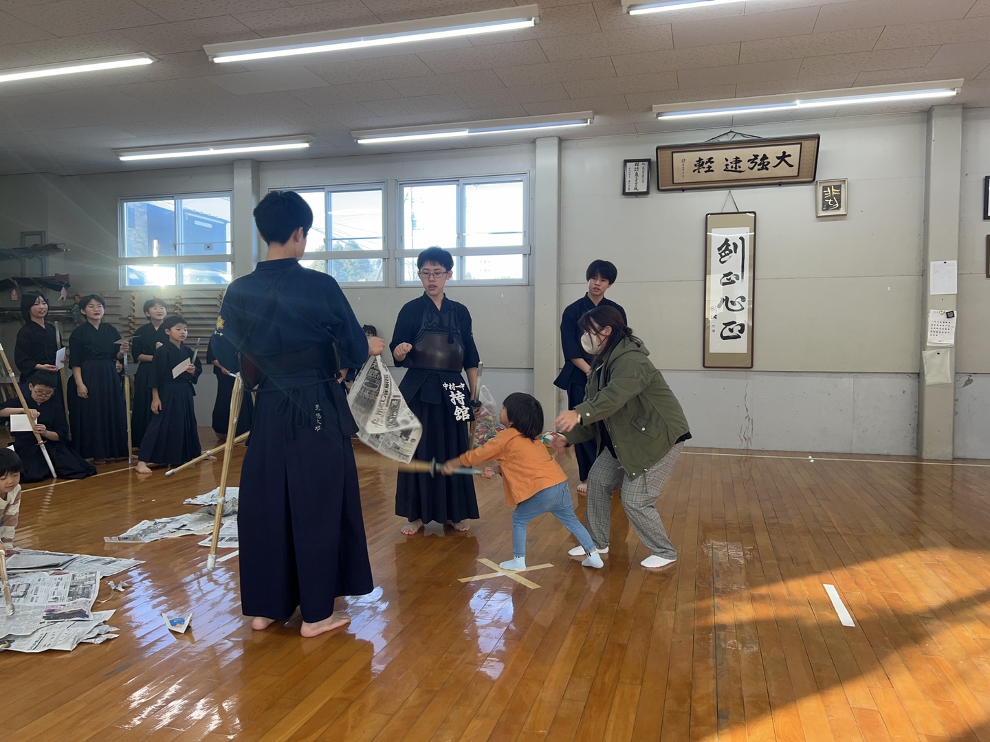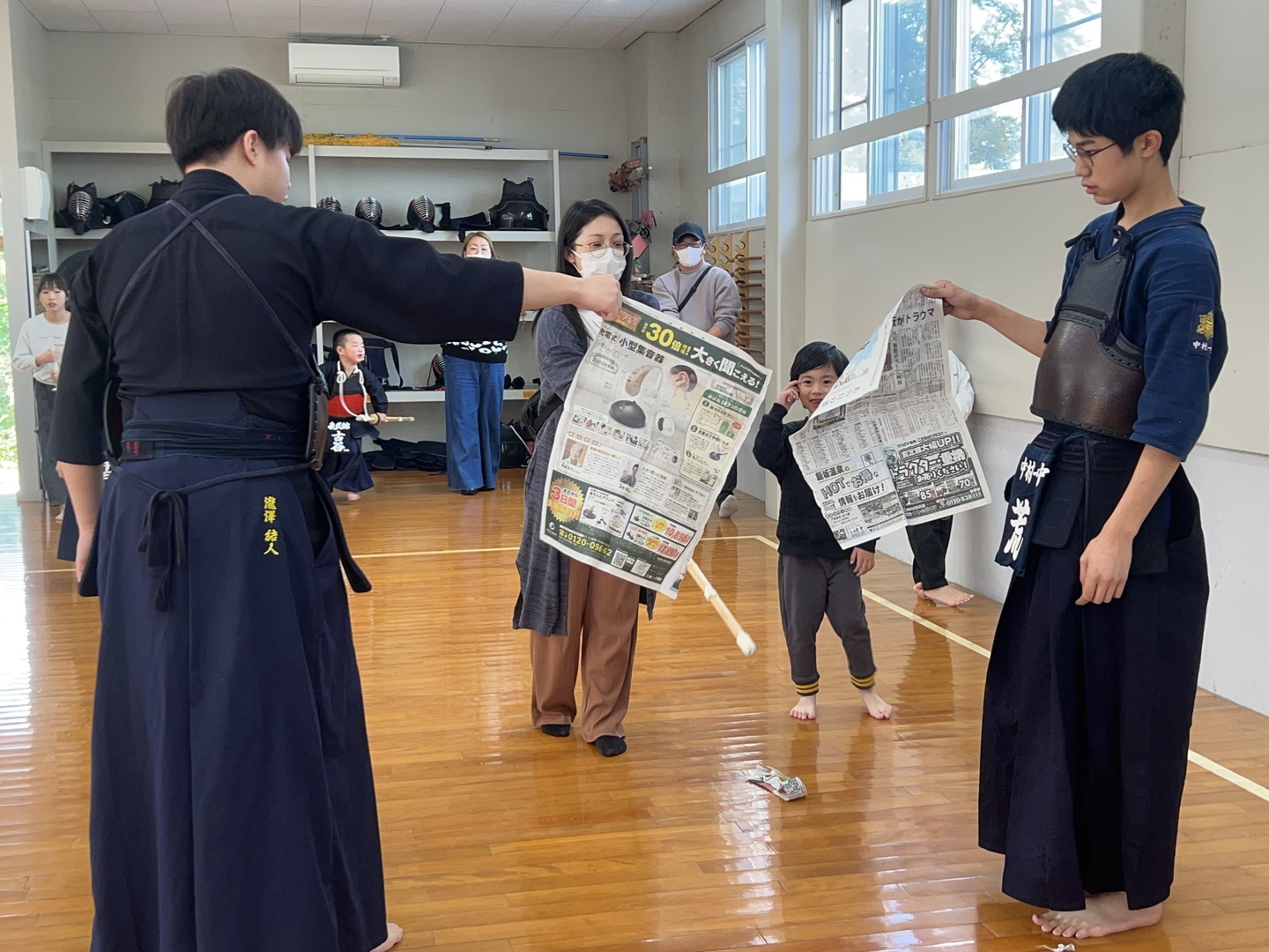 ・体験後、泉武館剣道場で行っている稽古をご覧になれます。見学をされる方は、体育館の空いているスペース、もしくは観覧席でごらんください。