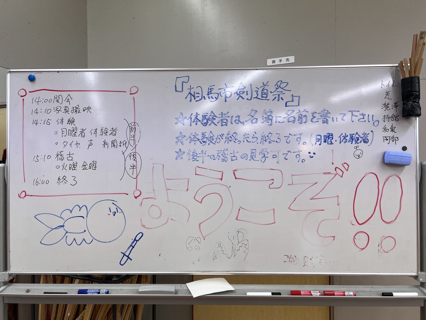 相馬市剣道祭が開催され、泉武館で稽古をしている月曜稽古者と火曜稽古者。金曜に稽古に来ている一般剣士が一同に会して稽古を披露しました。同時に、剣道体験も行われたくさんのお友達が遊びにきて、経験者と一緒に剣道にちなんだレクリエーションを楽しみました!!